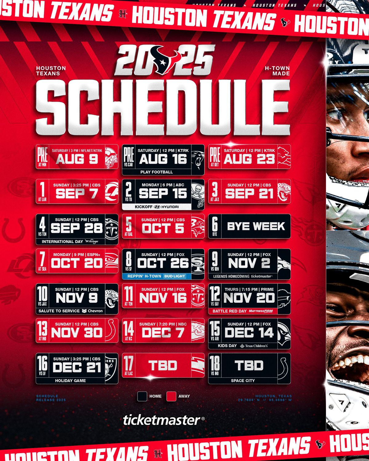 The wait is finally over! The Houston Texans have released their 2025 preseason and regular season schedules, giving fans a first look at what the upcoming 2025 NFL season has to offer.