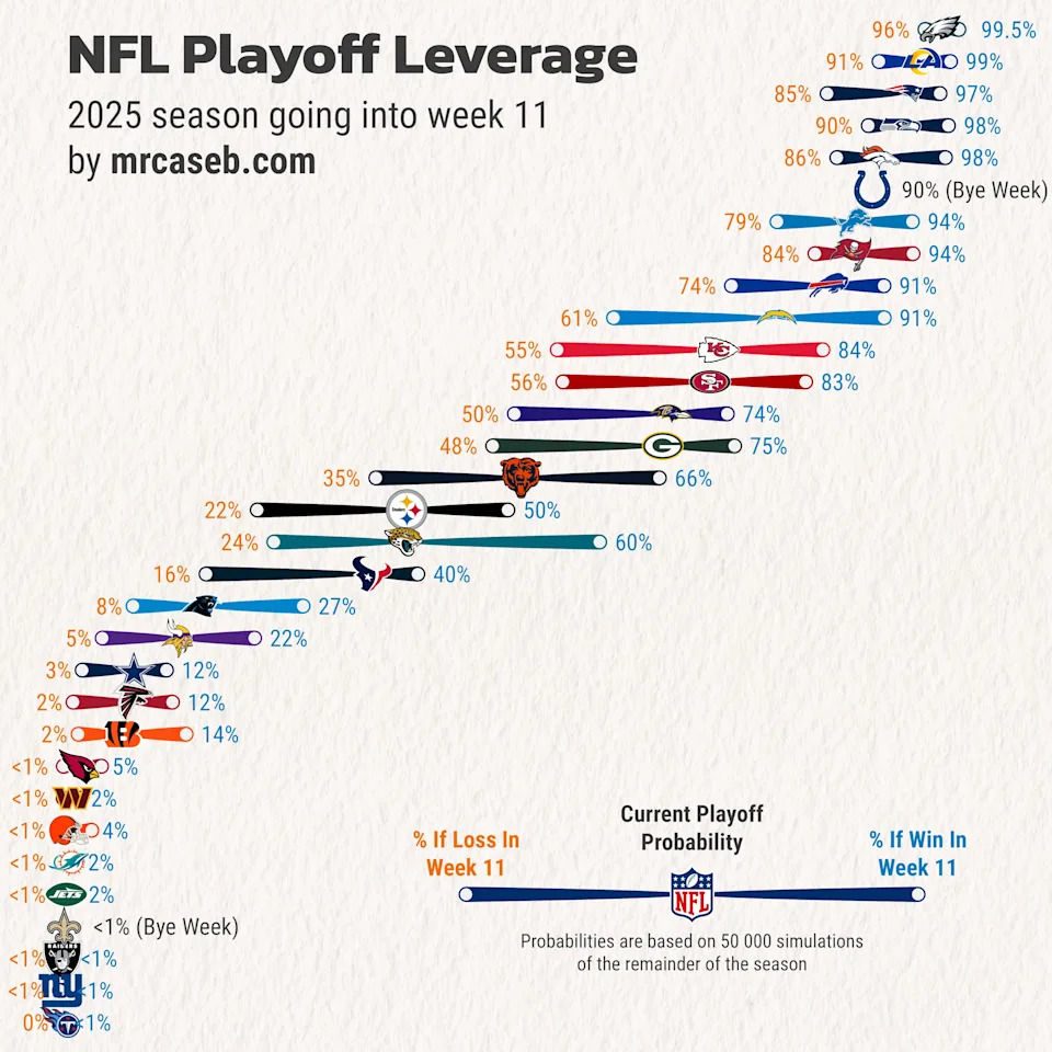 First, the NFC East will have only one playoff team- the Eagles- this is already clear. The Cowboys are 3-5-1, the Commanders are 3-7 and the Giants are 2-8. All three of those teams are out.