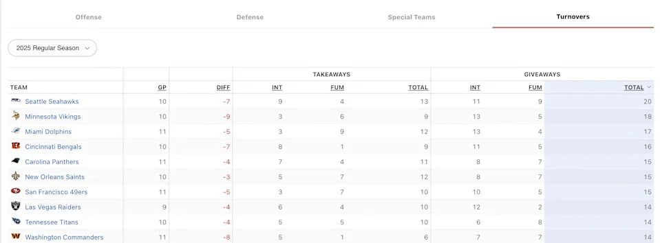 After Sam Darnold’s four interceptions in a 21-19 loss to the Los Angeles Rams, the Seahawks are the NFL’s undisputed leaders in turnovers committed.