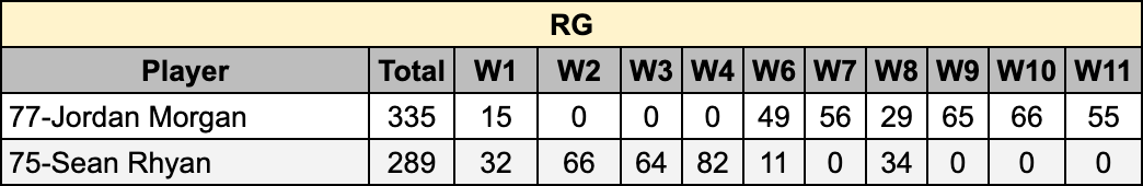 Rhyan had some bad snaps in his first game as a starter at center. A lot of this was explained away by the team as problems with the wind in MetLife Stadium on Sunday. Keep an eye on that moving forward, though, because I’m not sure how often I’ve heard wind being an excuse for poor shotgun snaps. That’s a new one to me.
