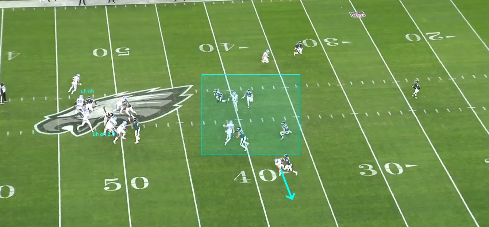 Who was right? It’s hard to say without knowing the keys for St. Brown’s option, but it is worth noting the Eagles were crowding the middle of the field on the play.