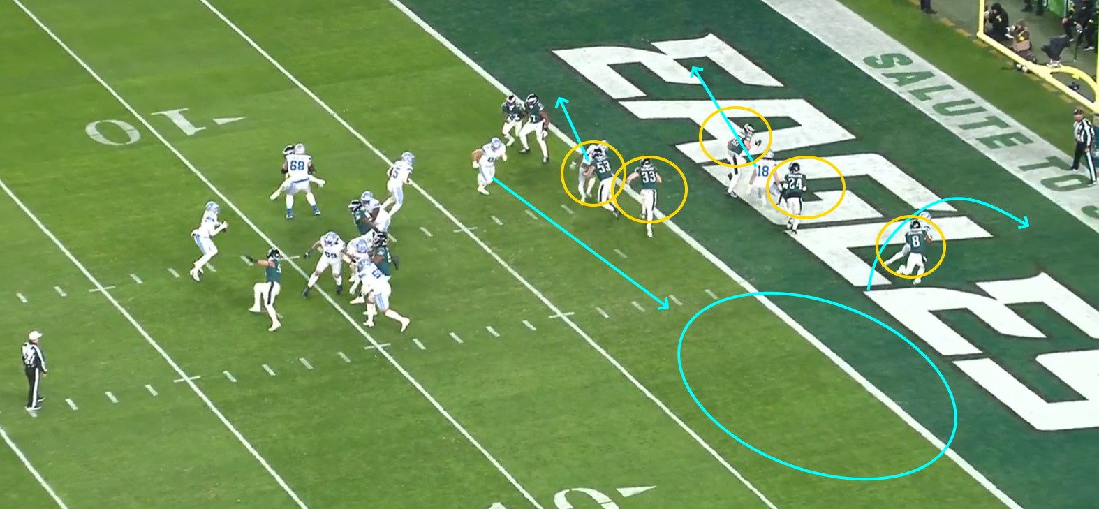 Overall, there’s plenty of blame to go around, from the offensive line getting overwhelmed—particularly against Ojomo—to Jared Goff’s inaccuracies to some mistakes from the receivers. The only commonality between all five plays is that execution was the biggest factor. All five plays—maybe save the punt fake—had legitimate chances for success, but the players just didn’t operate the play cleanly enough. And the Eagles’ defensive front certainly played a big factor in that.