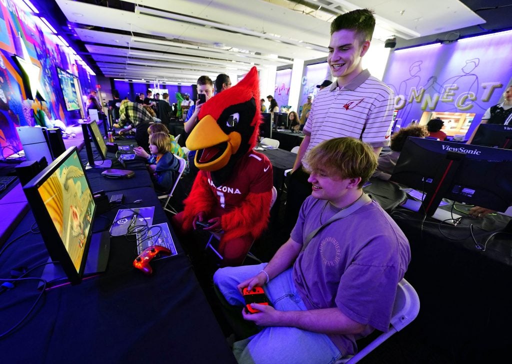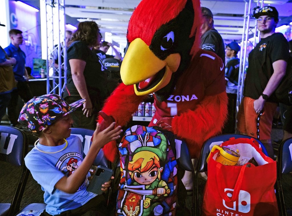 Arizona Cardinals mascot Big Red greeted young gamers on Saturday during the Gaming for Arizona’s Children fundraiser at GCU Esports Arena.