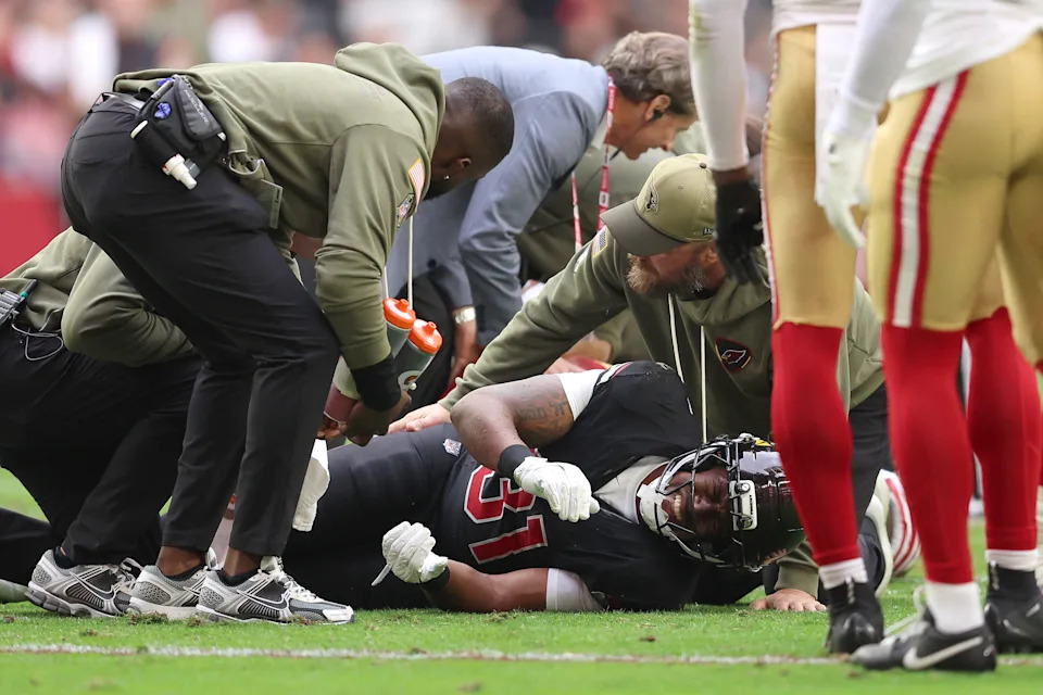 In the second quarter at the 10:09 mark against the San Francisco 49ers on a first-and-10, Demercado went up the middle and was tag-teamed by S Ji’Ayir Brown and MLB Tatum Bethune. The Cardinals were now at the Niners’ 24-yard line as Demercado had to be helped off the field. Later, he was ruled out.