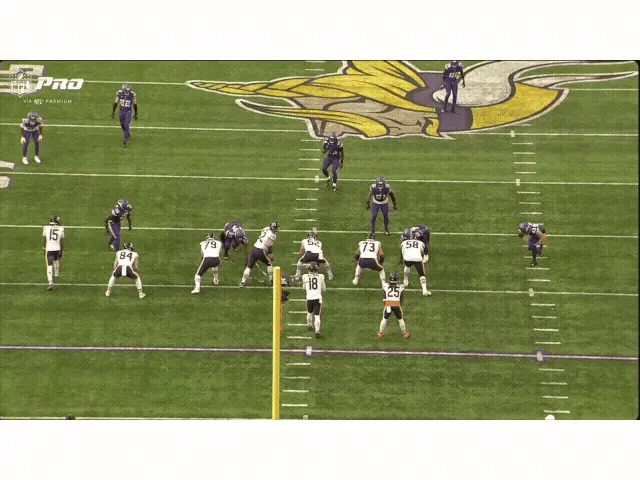 The Chicago Bears couldn’t keep Caleb Williams clean again on Sunday, but the Minnesota Vikings only got to him twice. The Vikes sent bliters from various angles, and they sent them often — on 66.7% of his drop-backs, according to Next Gen Stats — the second-highest blitz rate from any team this year. Caleb managed the blitz pretty well by either getting the ball out quickly, making a guy miss, or throwing the ball away.
