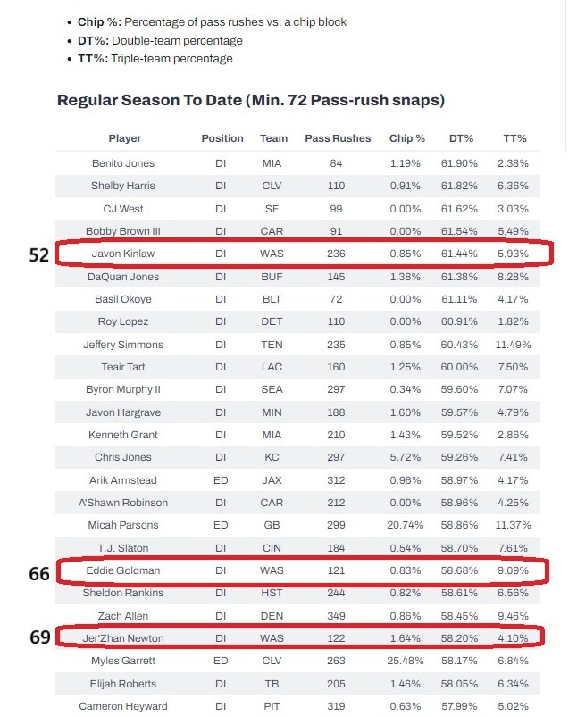 By analyzing chip-block and double-team rates, we can identify which NFL defenders consistently face extra attention in the trenches and still manage to make an impact.