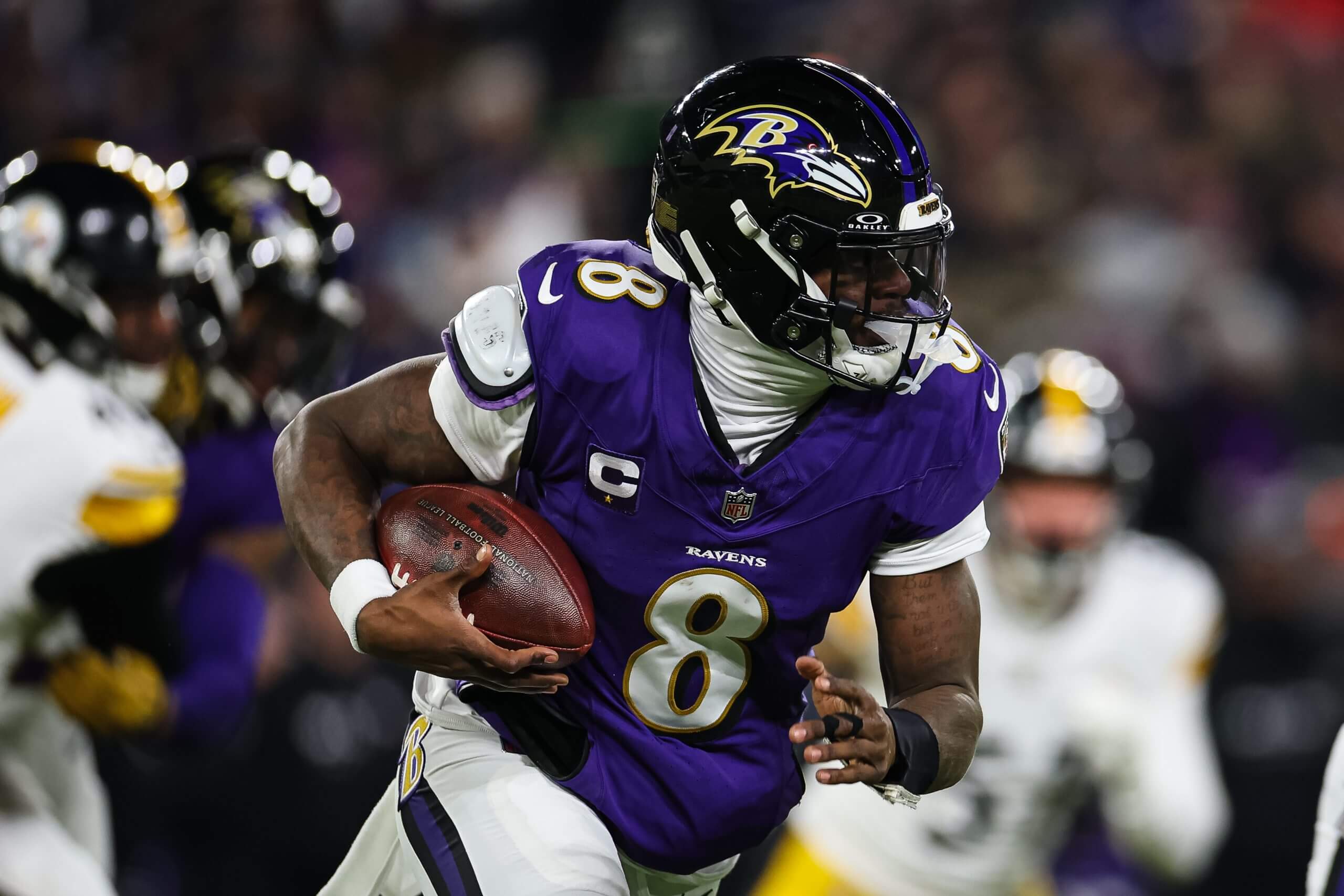 Lamar Jackson and the Ravens will be featured early in the 2025 NFL season on “Sunday Night Football.” (Scott Taetsch / Getty Images)