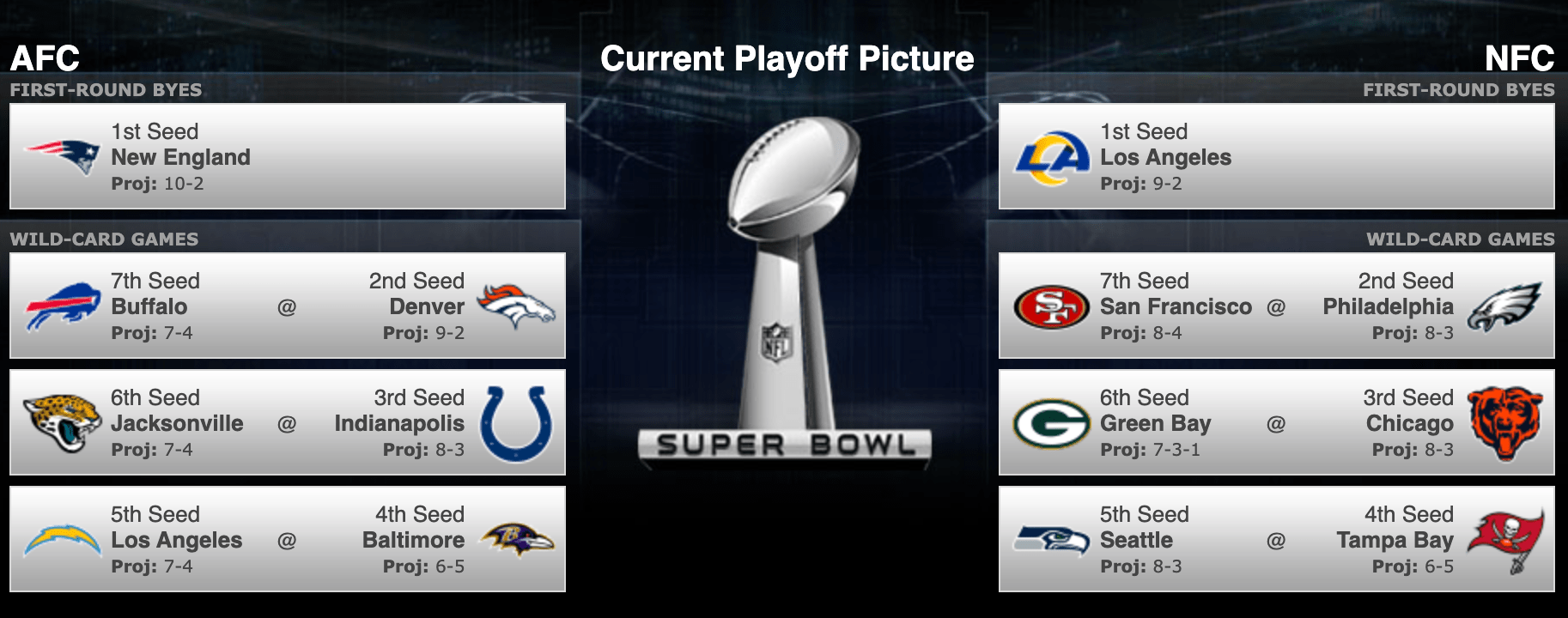 If the Titans, Eagles, Patriots, and Jets can pull off wins here, and the Dolphins win out, the Dolphins’ chances of making the playoffs would sit at 54%. In other words, Dolphins fans should be rooting against the Chargers, Jaguars, Bills, and even the Texans each and every week. The more results that fall Miami’s way, the higher their odds go.