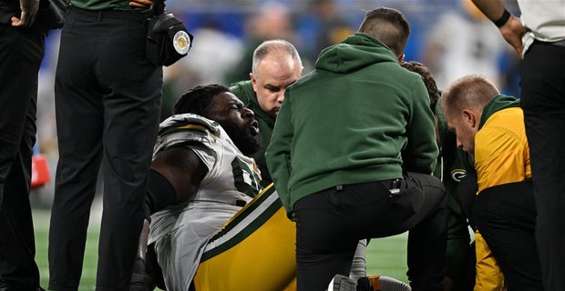 Devonte Wyatt is tended to by the Packers’ medical staff in Detroit on Nov. 27, 2025. (Photo: USA TODAY Sports)