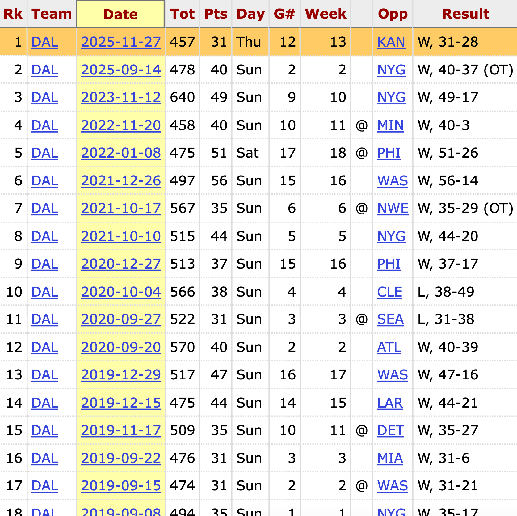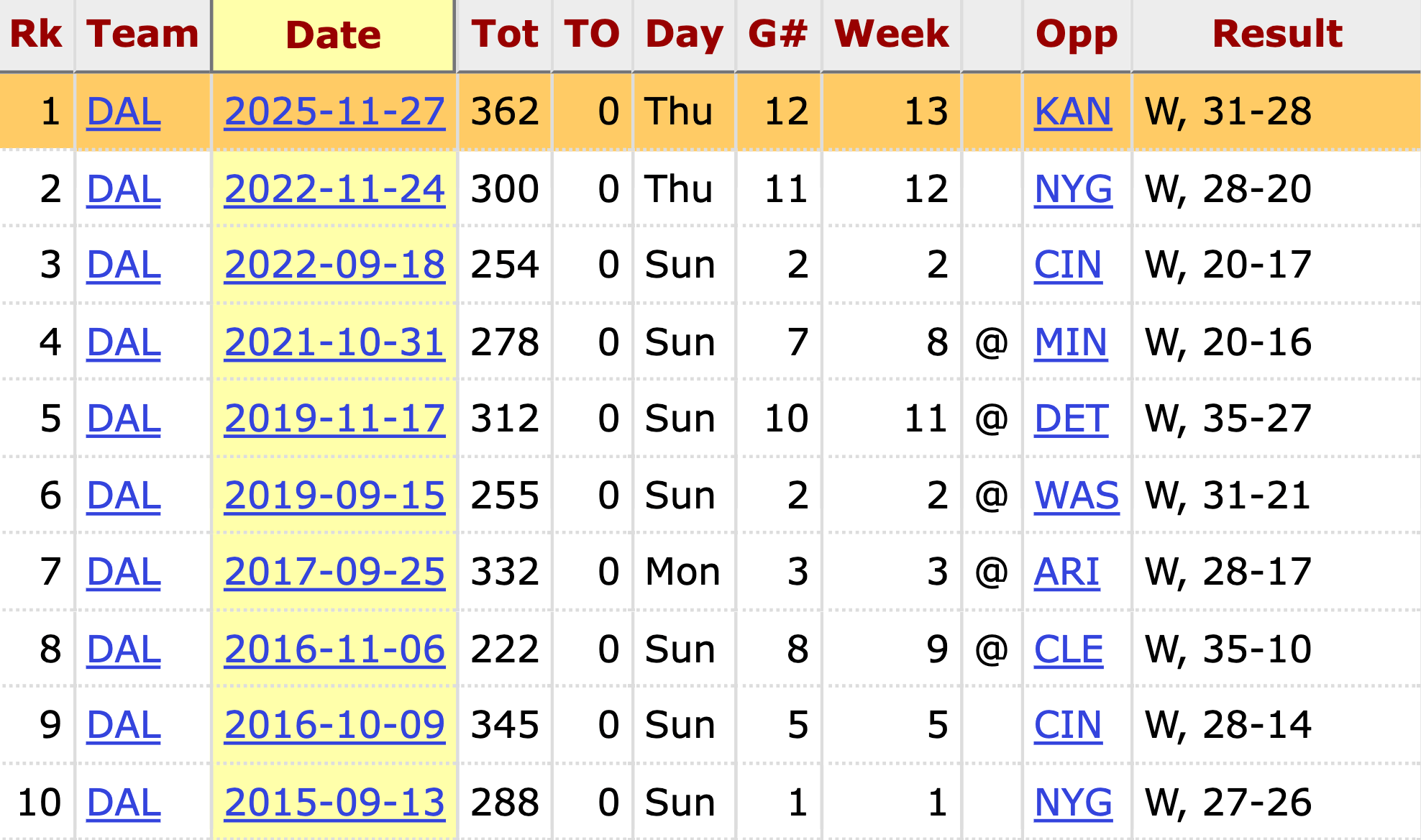 Consider that 2025 is the first season where Dallas has done this multiple times since 2021 (that first 2022 listing was the final game of the 2021 season, don’t get confused). These are some arbitrary numbers as this exercise can prove to be sometimes, but it is impressive nonetheless.