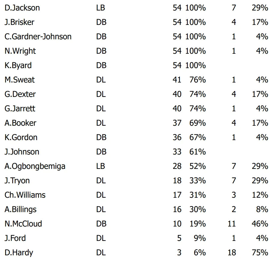 All statistics and snap counts, as well as the accompanying pictures, are taken directly from the NFL’s Game Statistic and Information System.
