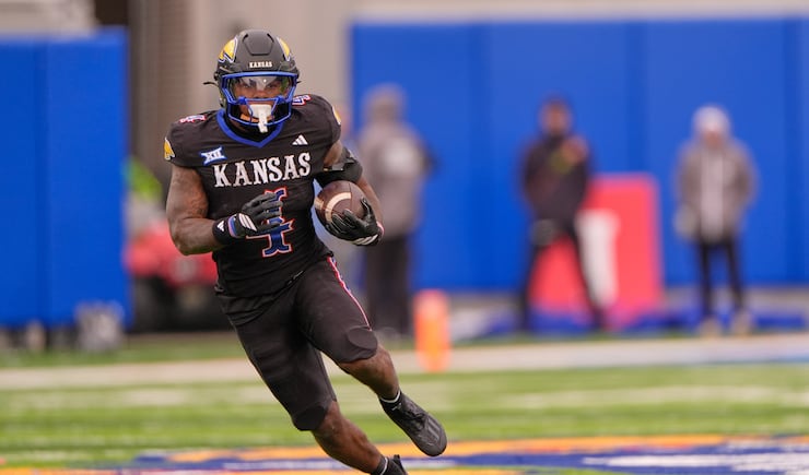 Kansas running back Leshon Williams runs the ball during game against Utah, Friday, Nov. 28, 2025, in Lawrence, Kan. | AP