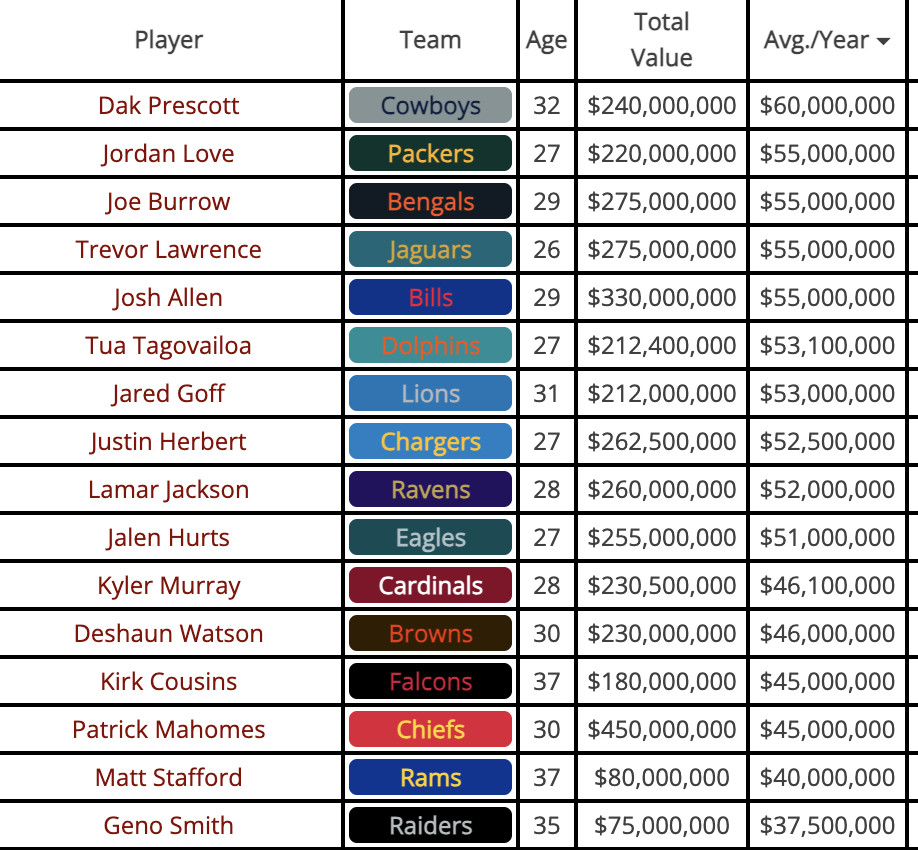 This is the nature of the business when it comes to quarterback contracts. The next QB up for an extension is going to sign a deal with a big number attached to it.