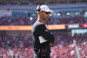 Sep 21, 2025; Santa Clara, California, USA; Arizona Cardinals head coach Jonathan Gannon on the sidelines during the first half against the San Francisco 49ers at Levi’s Stadium. Mandatory Credit: Cary Edmondson-Imagn Images