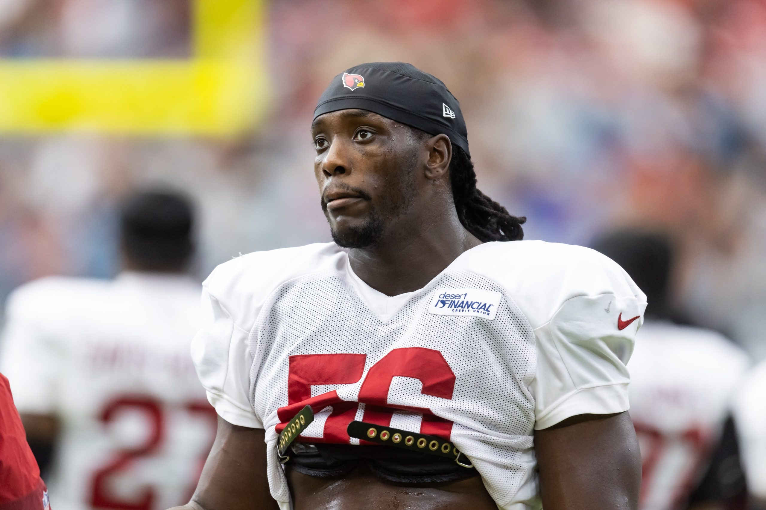 Arizona defensive lineman Robinson (56) walks off the field after their 27-22 win over the Carolina Panthers at State Farm Stadium on Sept 14, 2025.