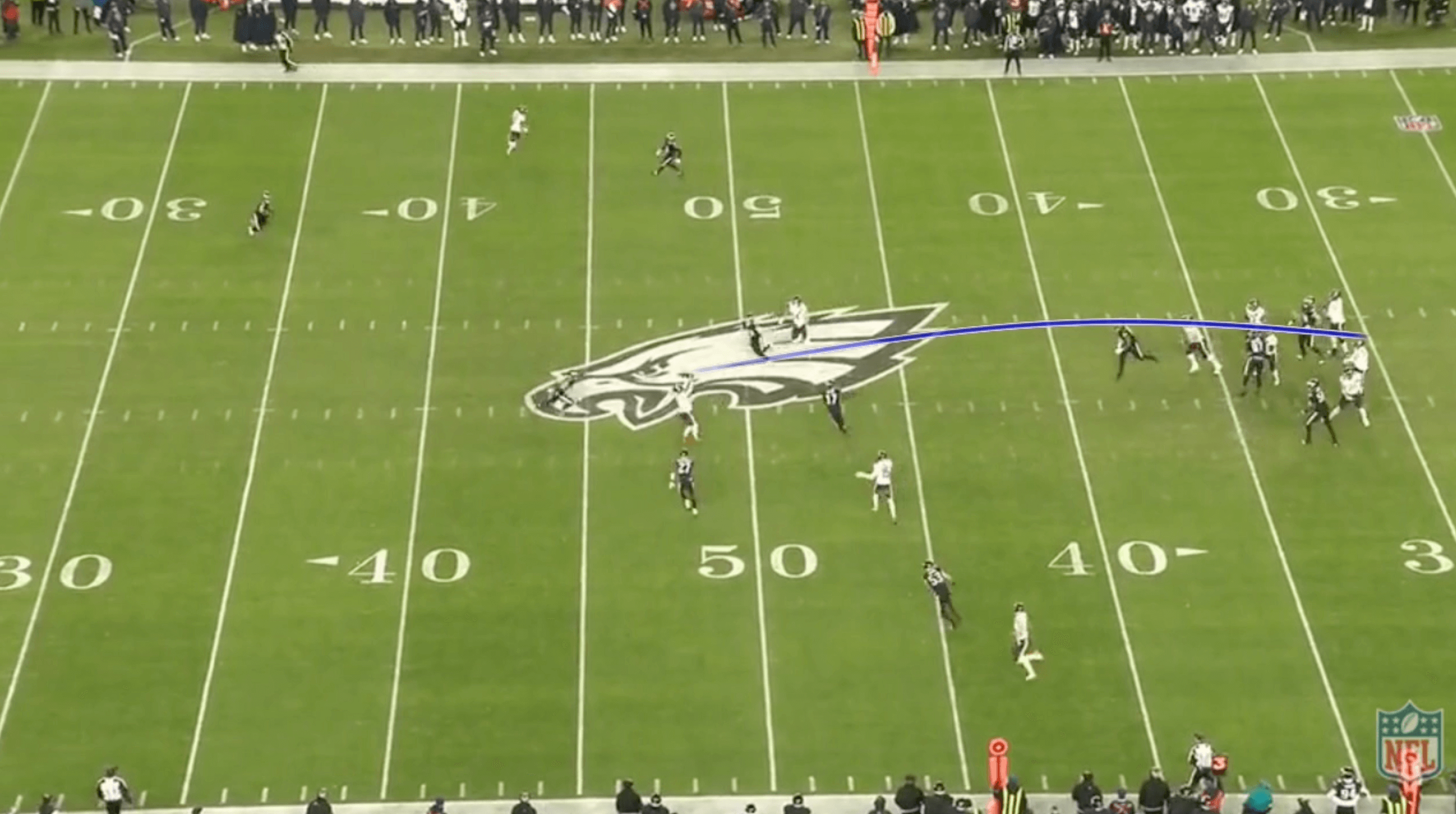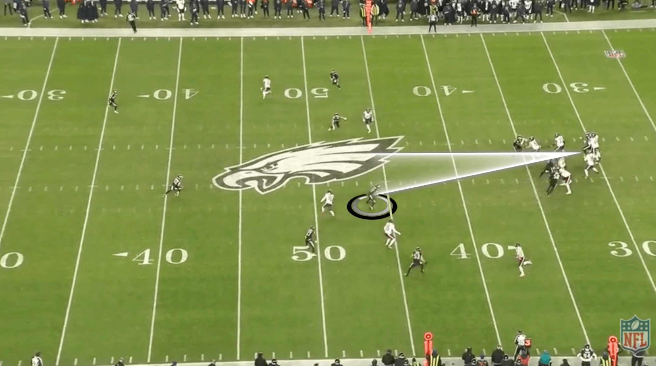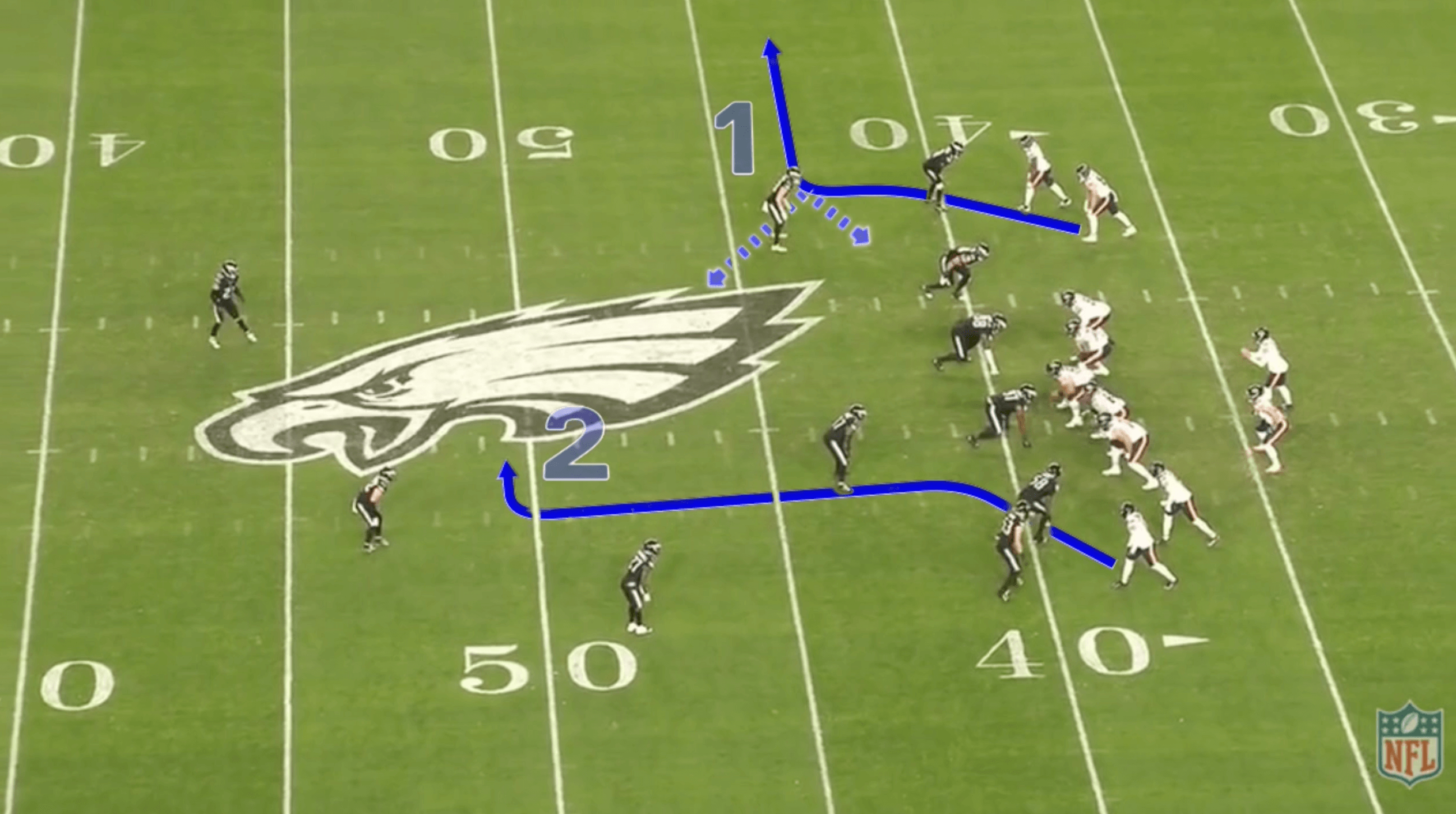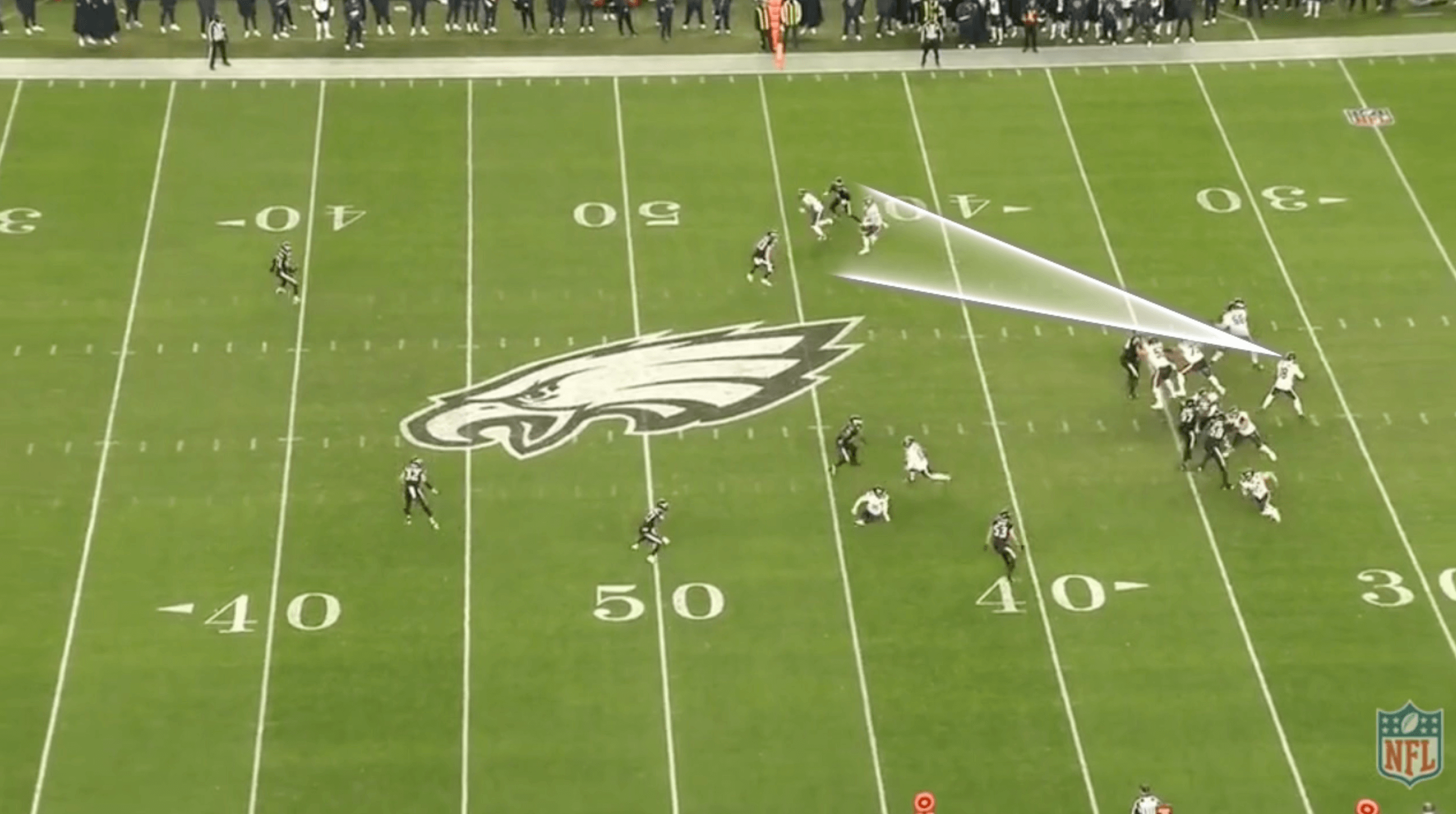 Williams looked to Loveland. The Eagles were in match coverage and tightly covered the choice route.