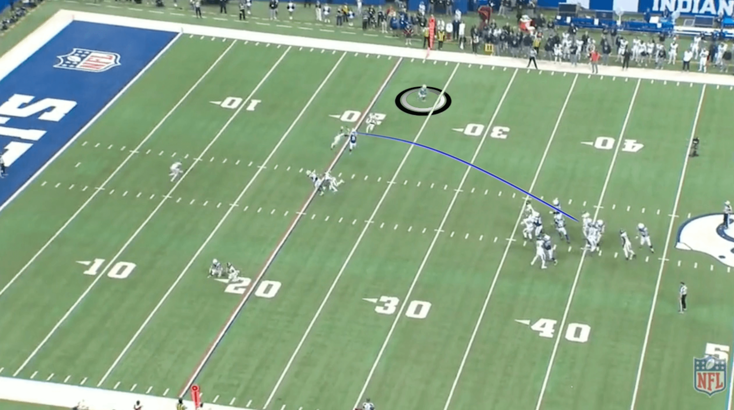 Jones actually was protected, but the relentless pressure he faced all day made him rush the pass. He didn’t see the flat defender collide with a receiver, resulting in Josh Downs getting wide open outside.