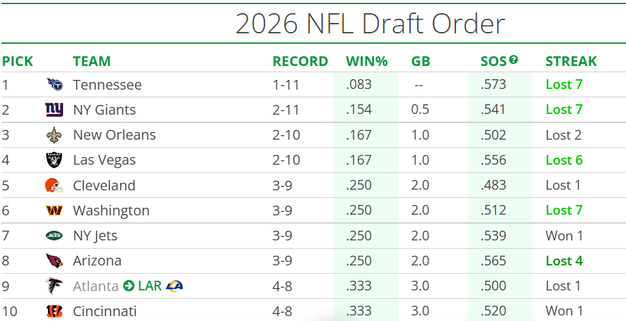 More interesting is the fact that there are four quarterback needy teams directly behind the Giants, in the New Orleans Saints, Las Vegas Raiders, Cleveland Browns, and New York Jets.