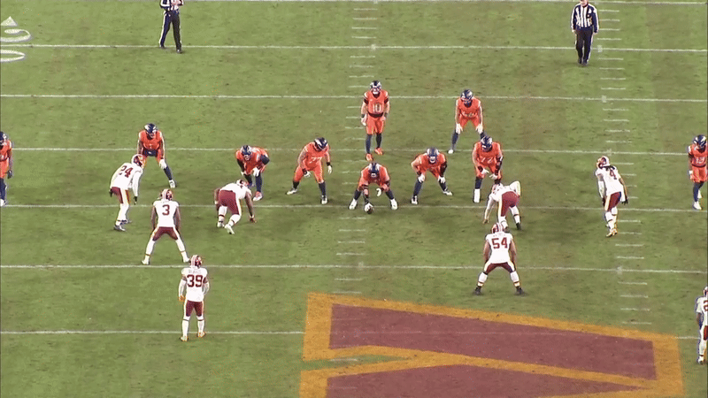 Side note: for those that care, I was pretty torn of trying to figure out if this was Inside or Outside Zone. The slice block by Trautman make it seem like IZ, and where Jaleel McLaughlin attempts to rush makes it seem like IZ, but the reach blocks by the offensive line and how they’re declaring rushing lanes by flipping their hips seems to be more of an Outside Zone concept. Either way, good block by Bolles.