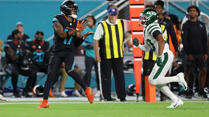 MIAMI GARDENS, FLORIDA – SEPTEMBER 29: Kris Boyd #17 of the Miami Dolphins catches a pass during an NFL football game against the New York Jets at Hard Rock Stadium on September 29, 2025 in Miami Gardens, Florida. (Photo by Logan Bowles/Getty Images)