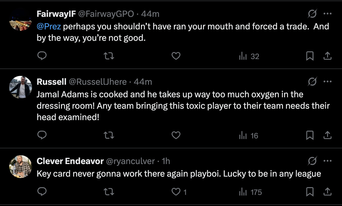 No animosity towards Adams in the slightest. I’d always hoped it would have worked better here, and the league was better when he was at his best.