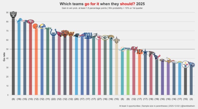 The graphic below from The Athletic’s Ben Baldwin suggests Carroll has been the NFL’s no. 1 decision maker in term of what analytics say to do on fourth down.