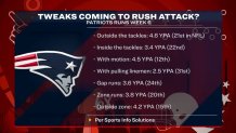 Perhaps one tweak they could make to have a better overall rushing attack would be to try a little more outside zone. Bootleg play-action calls off those have been productive for the Patriots in the past, so maybe McDaniels would be OK with a little bit of a shift there.