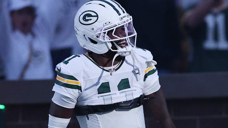 GREEN BAY, WISCONSIN – SEPTEMBER 11: Jayden Reed #11 of the Green Bay Packers takes the field prior to the game against the Washington Commanders at Lambeau Field on September 11, 2025 in Green Bay, Wisconsin. (Photo by Michael Reaves/Getty Images)