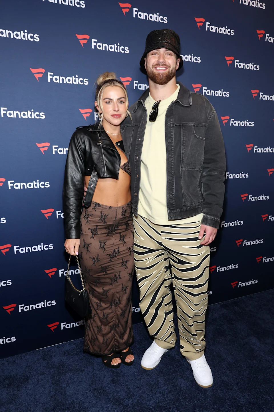 Haley Cavinder and her fiancé, Dallas Cowboys tight end Jake Ferguson, attend the 2024 Fanatics Super Bowl Party on Feb. 10, 2024 in Las Vegas.