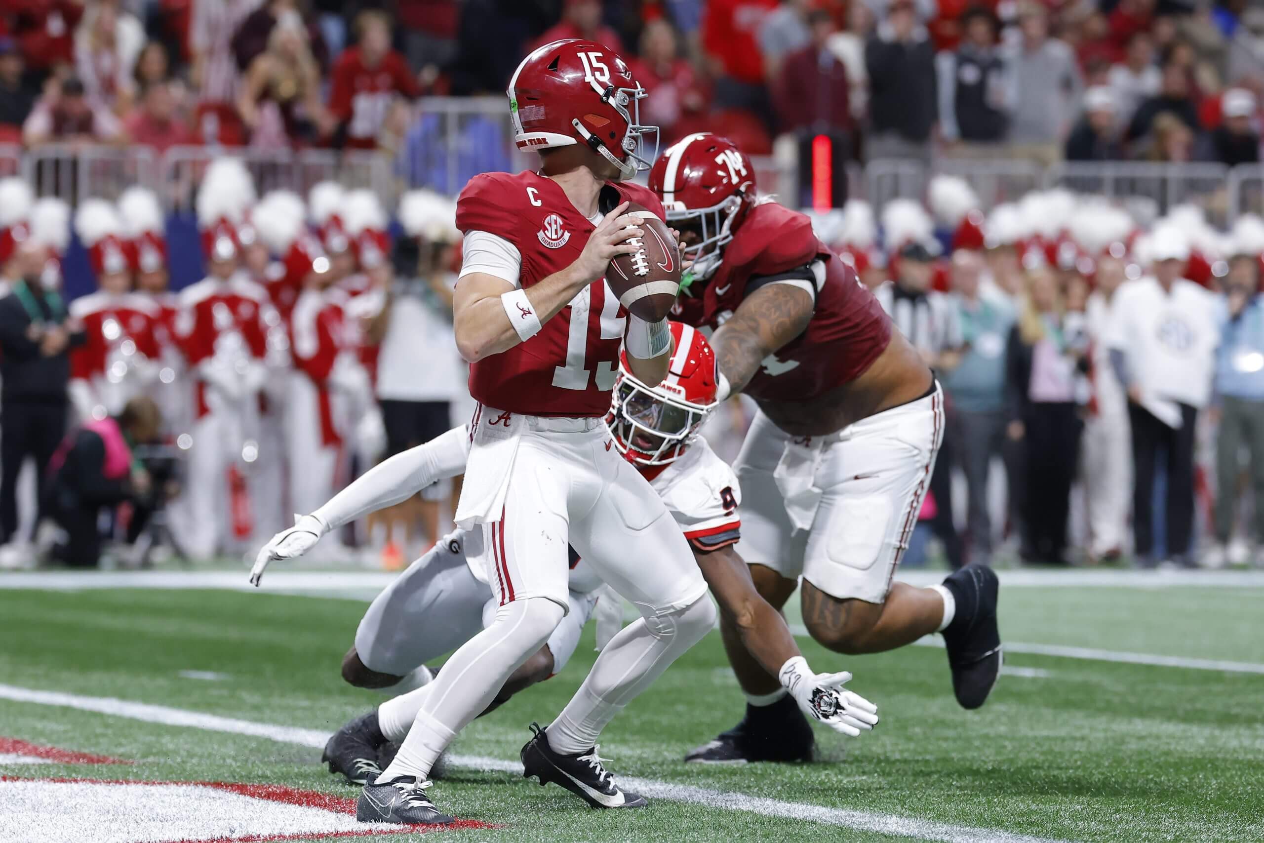 5. The idea that then-10-2 Alabama might miss the field if it lost in the SEC Championship Game didn’t seem like a real possibility last Tuesday when the committee moved the Tide up a spot to No. 9, ahead of Notre Dame. But that was before they played the game. No. 3 Georgia whupped Bama 28-7, holding the Tide to minus-3 rushing yards, in avenging their Sept. 27 home loss to Kirby Smart’s nemesis. Ty Simpson, under heavy duress all game, completed just 19 of 39 passes. The Tide lost for the second time since Nov. 15.