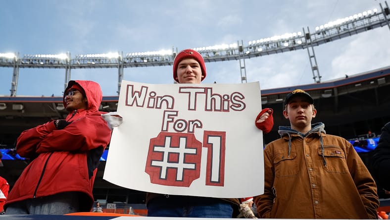 Dec 18, 2022; Denver, Colorado, USA; A Arizona Cardinals fans holds up a sign for quarterback Kyler Murray (not pictured) before the game against the Denver Broncos at Empower Field at Mile High. Mandatory Credit: Isaiah J. Downing-USA TODAY Sports