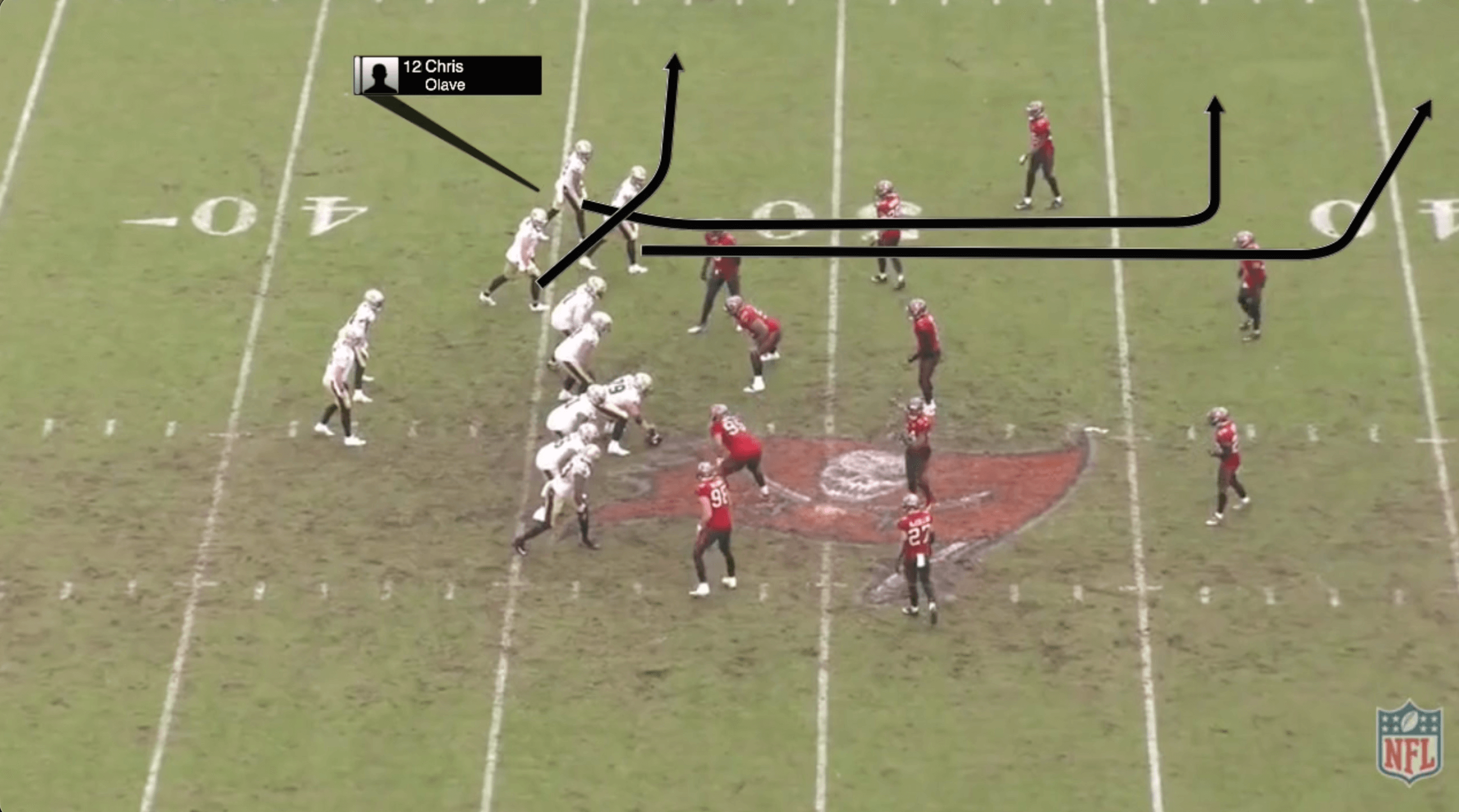 On third-and-10, the Saints called a “sail” concept, with Chris Olave running the sail route out of the bunch.