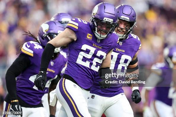 MINNEAPOLIS, MINNESOTA – DECEMBER 07: Harrison Smith #22 of the Minnesota Vikings reacts during the second half against the Washington Commanders at U.S. Bank Stadium on December 07, 2025 in Minneapolis, Minnesota. (Photo by David Berding/Getty Images)
