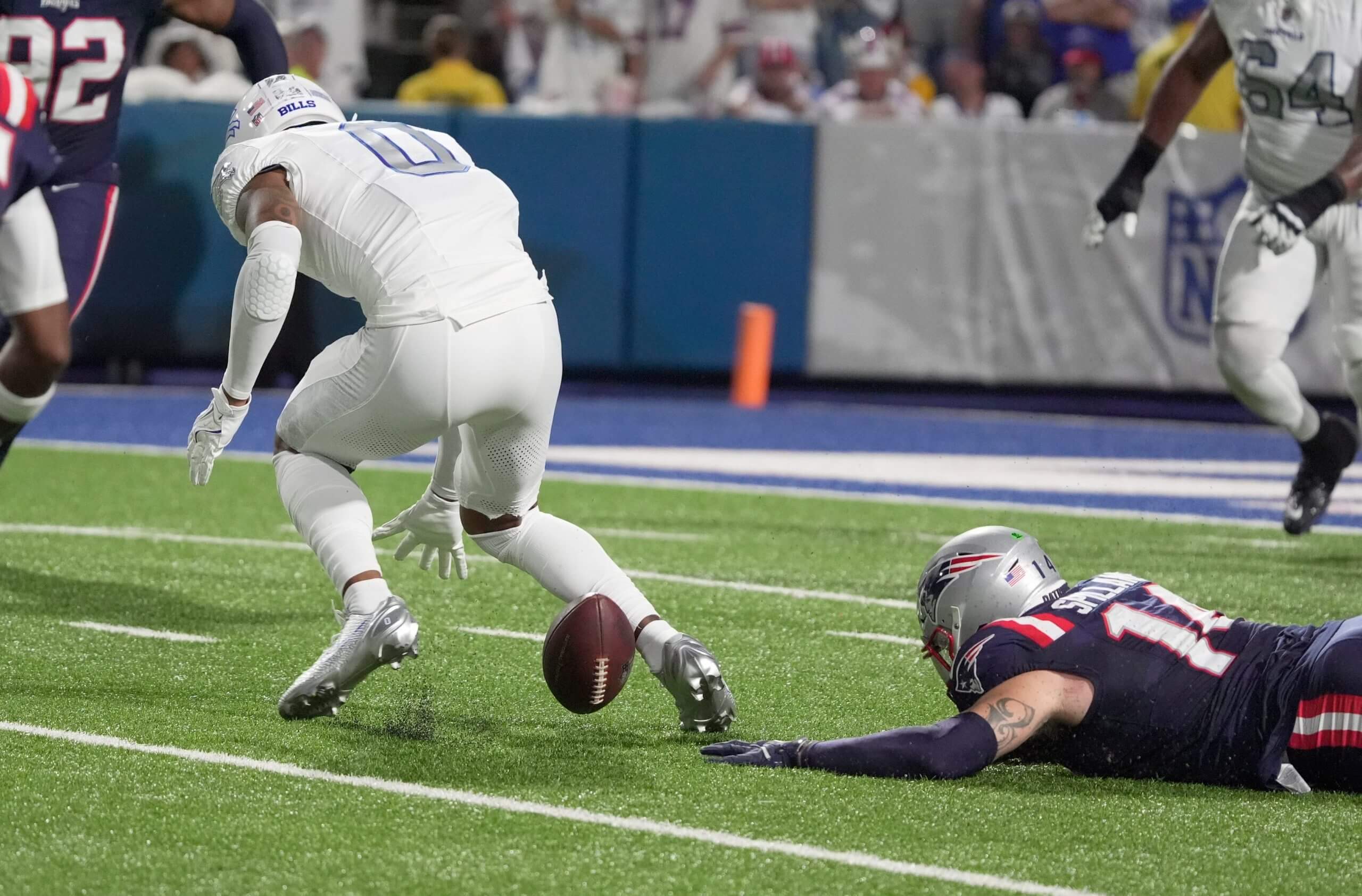 Keon Coleman’s fumble was one of the lowlights of the Bills’ previous matchup with the Patriots. (Tina MacIntyre-Yee / Imagn Images)