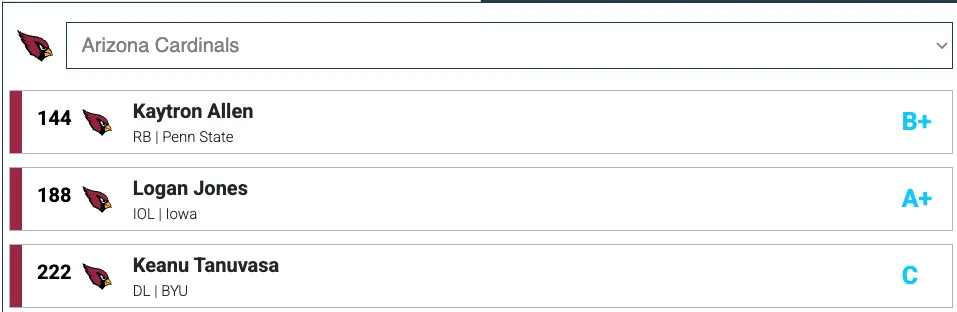 At this point in the draft, an extremely athletic interior offensive lineman feels like a no-brainer for Arizona. Jones could probably be their starting center or guard, as he’s got the frame and ability to play either position.