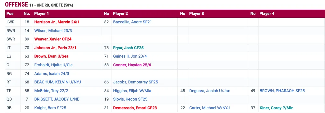 With their first round pick, the only quarterbacks available would be Ty Simpson and Garrett Nussmeier, so if they don’t trade up to target one of the top 2 or 3, I could see them sitting back and taking a quarterback in round two or three, potentially.Â
