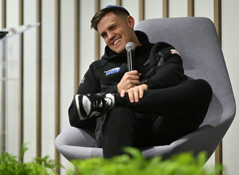 BYU quarterback Jake Retzlaff laughs as he takes part in a question and answer session ahead of a night of laughter as Chabad of Utah County presents Saturday Night Comedy Night, headlined by the Eitan Levine in Lehi on Saturday January 25, 2025. | Scott G Winterton, Deseret News