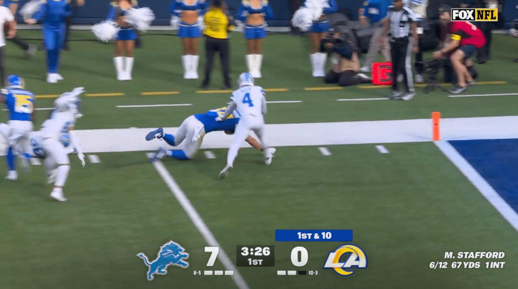 The irony of all of this is that replay officials DID END UP ADJUSTING THE SPOT ANYWAY, due to replay assistance from New York. The Rams’ next snap was taken at the 4-yard line after originally being spotted at the 3. If the Lions hadn’t thrown the challenge flag, the Rams were about to take a snap from the 3-yard line.