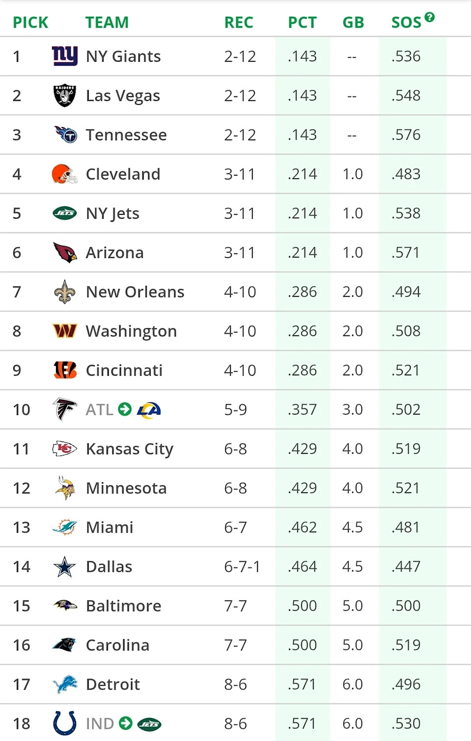 The Washington Commanders’ eight-game losing streak is over, and yesterday’s win had some big implications for the order of next year’s draft. They defeated the New York Giants, who had the No. 1 spot going into Week 15, and who will remain the worst team in the NFL for another week. The Commanders were projected to have the 6th-overall pick before yesterday’s 29-21 win, but have dropped down to No. 8 with a 4-10 record.