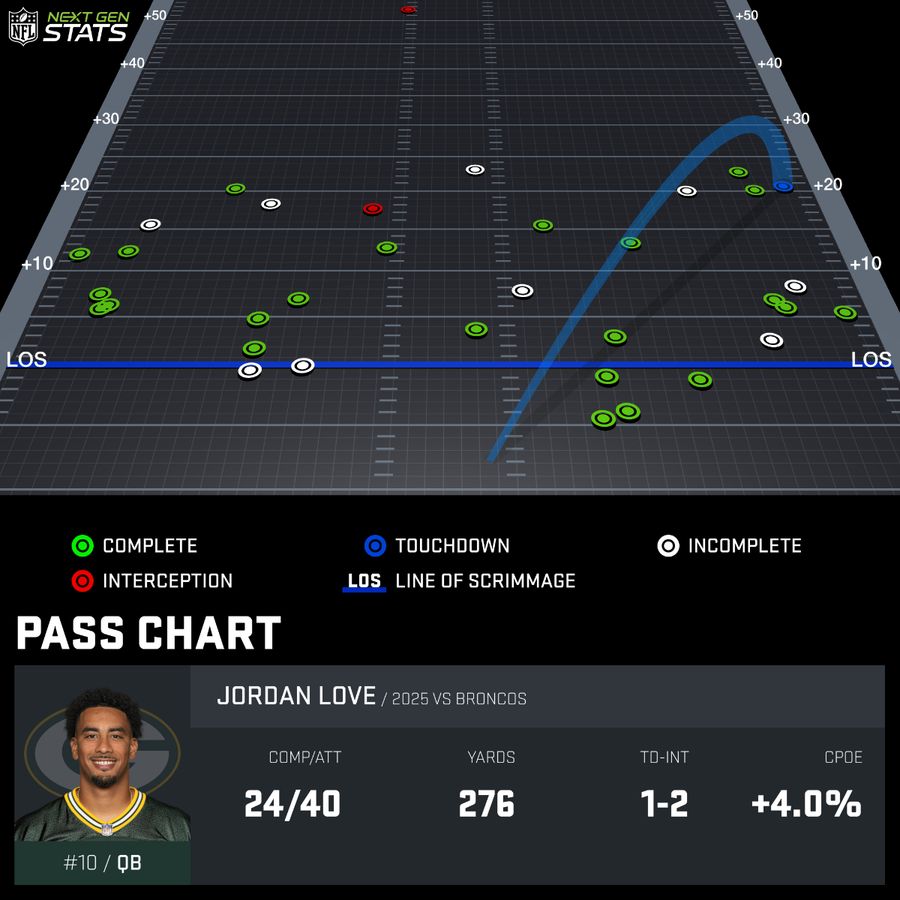The real story of the passing game was the constant pressure Love was under. This week, Love was under pressure on 52.2% of his dropbacks, per NFL Pro. That was the second-highest pressure rate in the league, only behind Shadeur Sanders at 52.4%. The main difference? Sanders’ average time to throw was 3.15 seconds, while Love’s average time to throw was 2.97 seconds. Love’s numbers under pressure aren’t bad – 10/19, 147 yards, 1 TD, 1 INT – but it was a constant throughout the game and pressed harder in the 2nd half.
