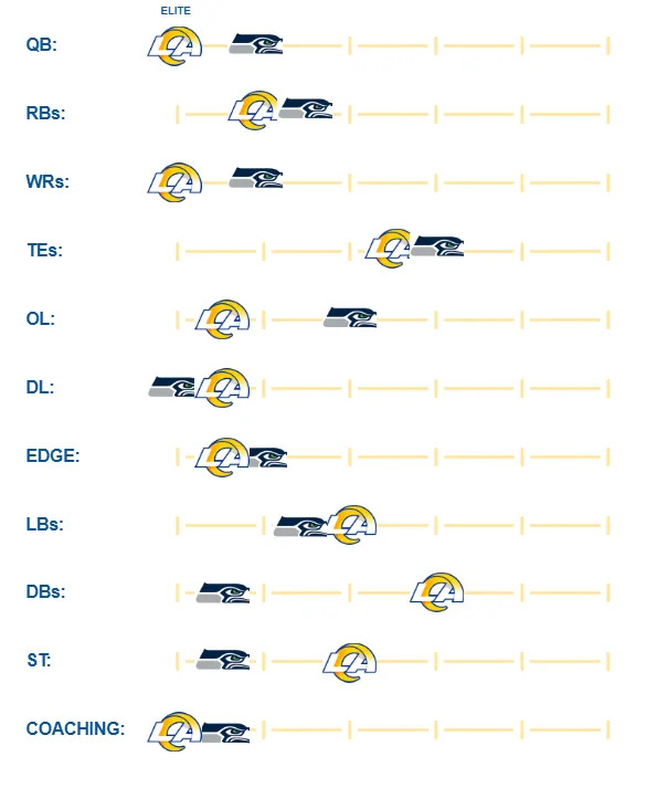 This is Seattle’s biggest advantage over Los Angeles. Devon Witherspoon is the #1 corner in football. Nick Emmanwori, Josh Jobe, Coby Bryant, and Julian Love are all playing great football as well.