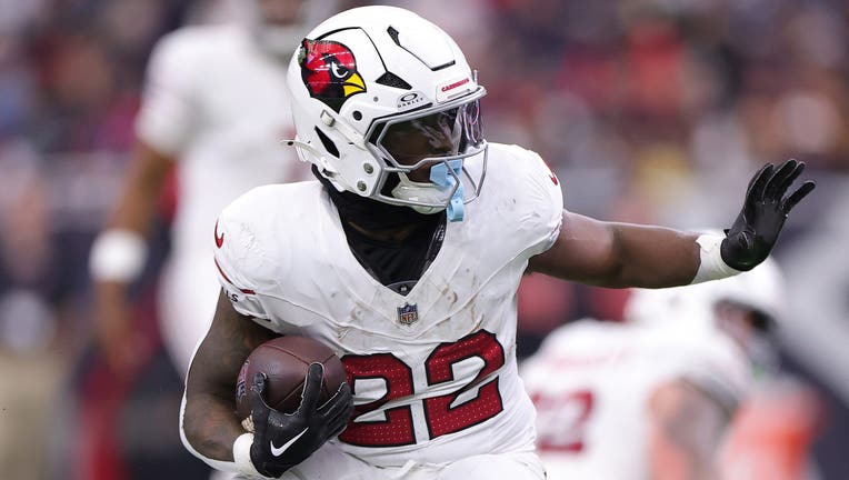 Michael Carter #22 of the Arizona Cardinals carries the ball against the Houston Texans during the third quarter at NRG Stadium on December 14, 2025, in Houston, Texas. (Photo by Alex Slitz/Getty Images)