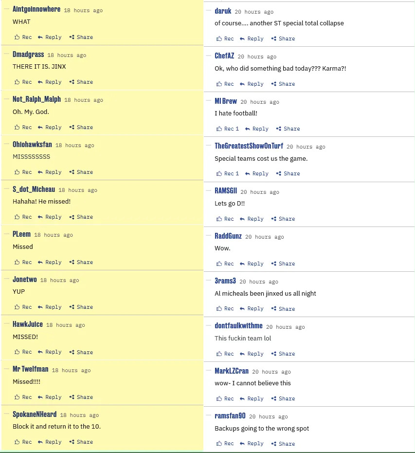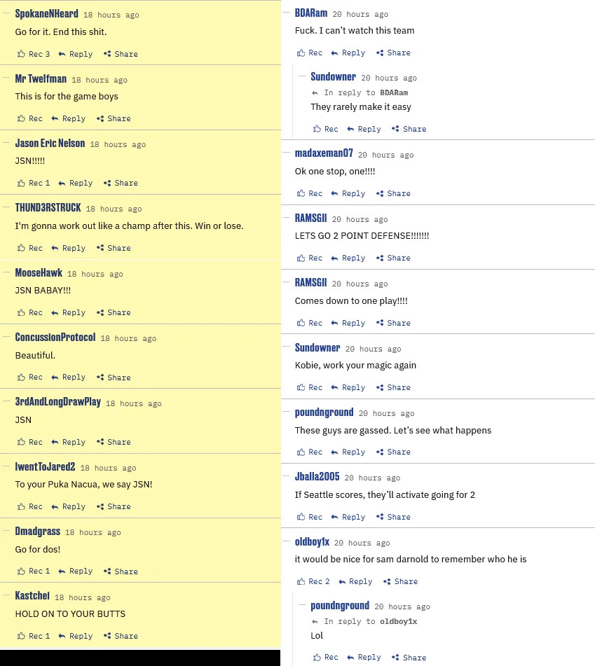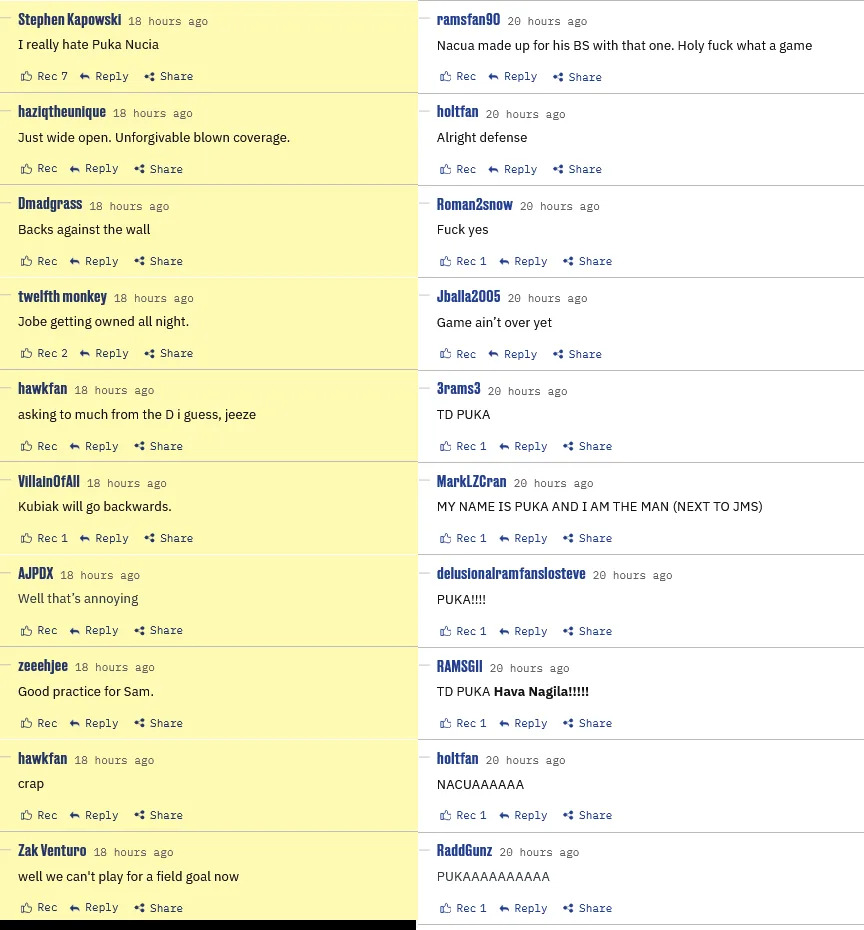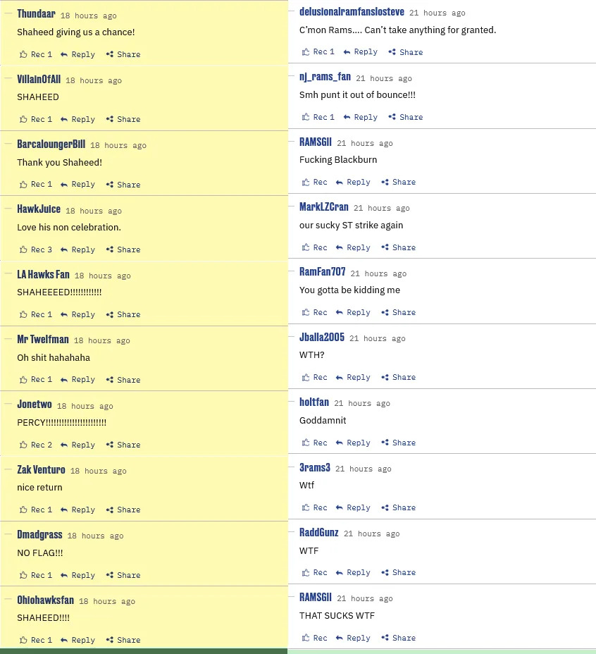 Game thread comments on the Rams’ side are courtesy of Turf Show Times.