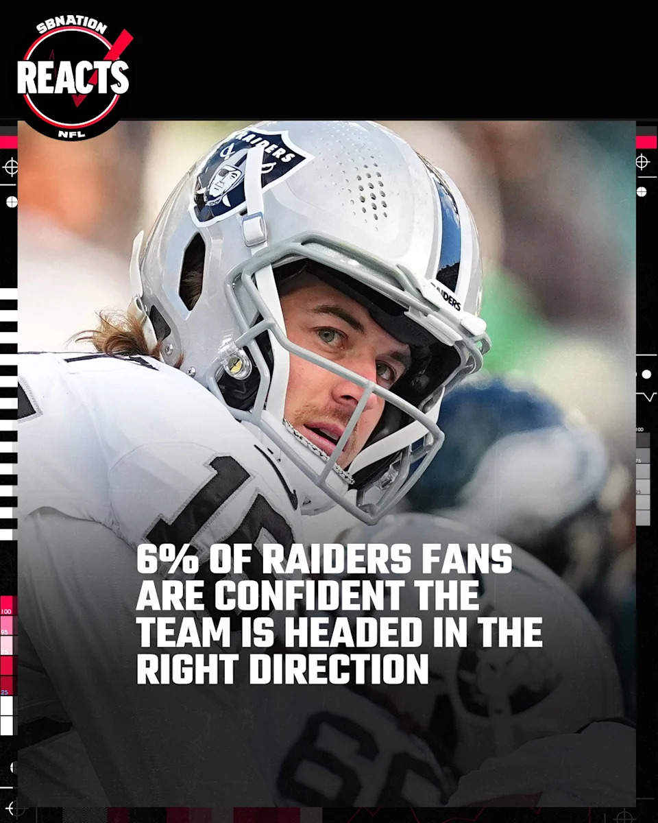 In this week’s SB Nation Reacts, we ask Raider Nation what their confidence is in the team’s direction. Heading into Week 16, the Nation is not excited about the future. We saw a drop from 10% to their lowest of the season, at 6% confidence in the team’s direction.