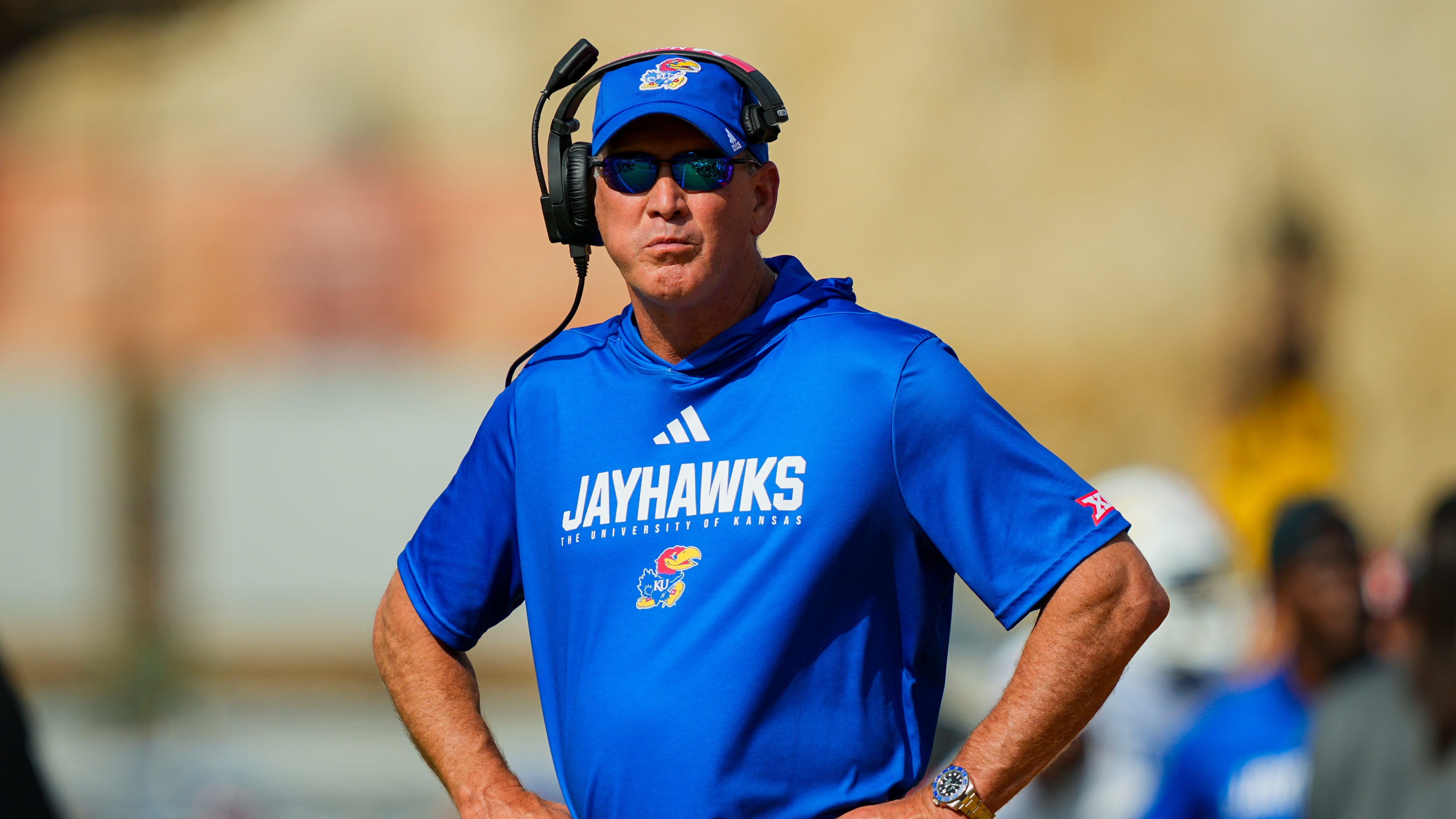 Kansas football coach Lance Leipold reacts to home loss against Utah
