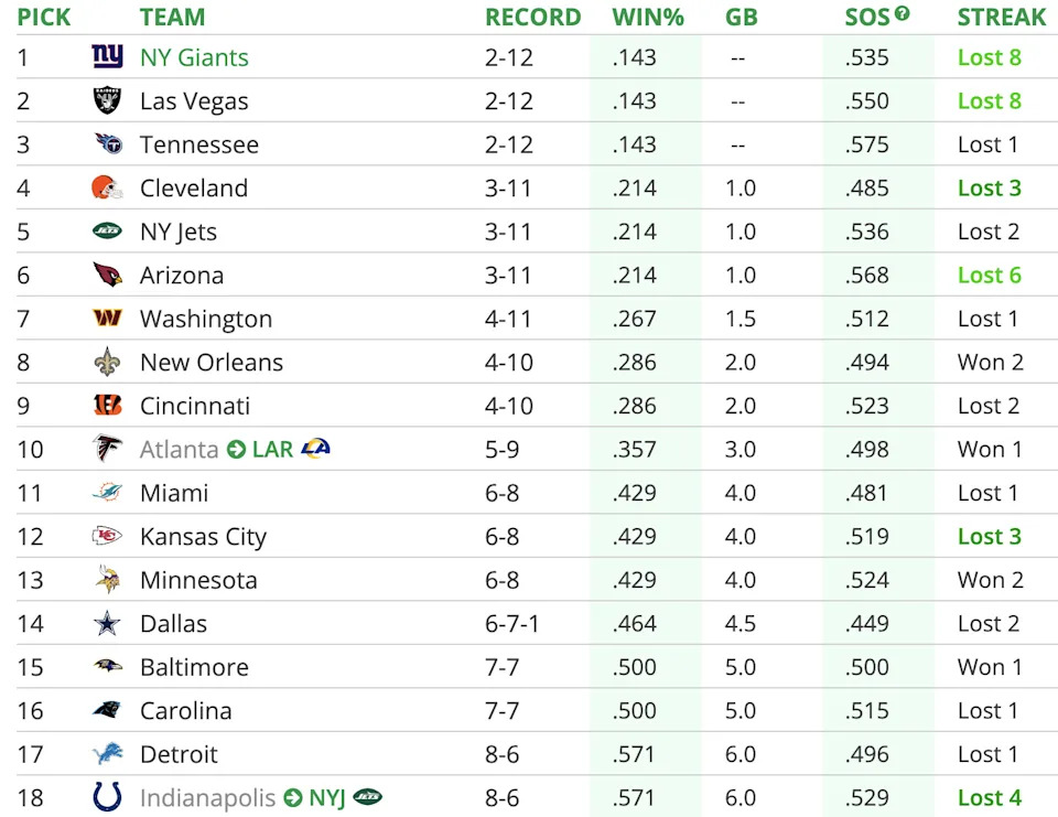 Here’s the current 2026 NFL Draft order for non-playoff teams, via Tankathon: