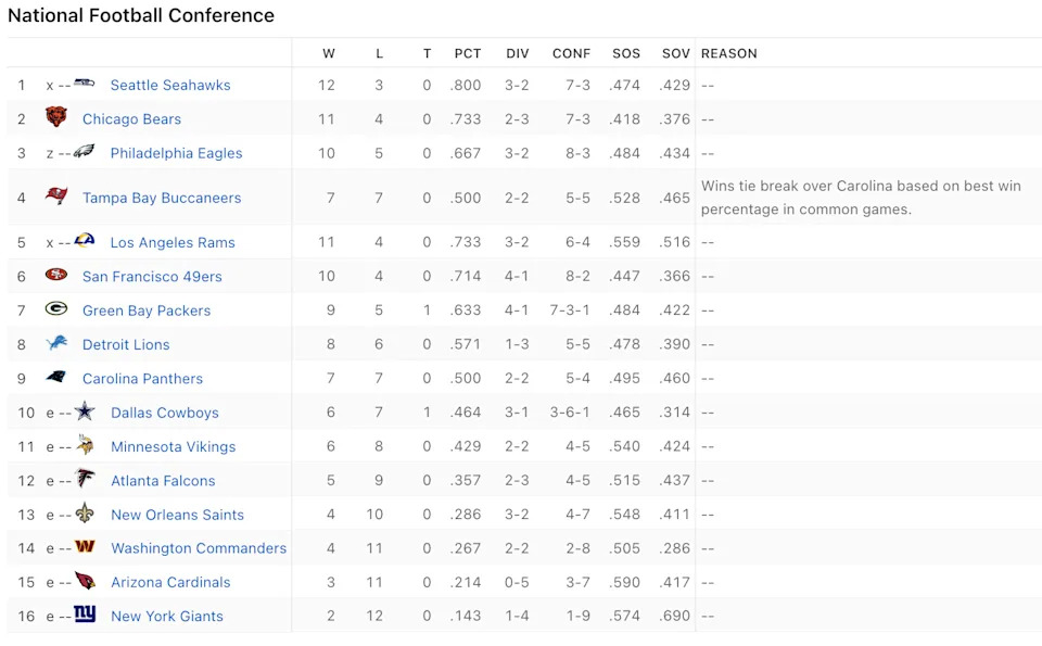 Here’s a look at the current NFC playoff picture, via ESPN: