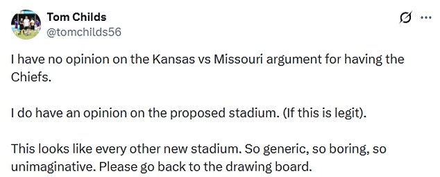 ‘I have no opinion on the Kansas vs Missouri argument for having the Chiefs,’ one fan said. ‘I do have an opinion on the proposed stadium. (If this is legit).