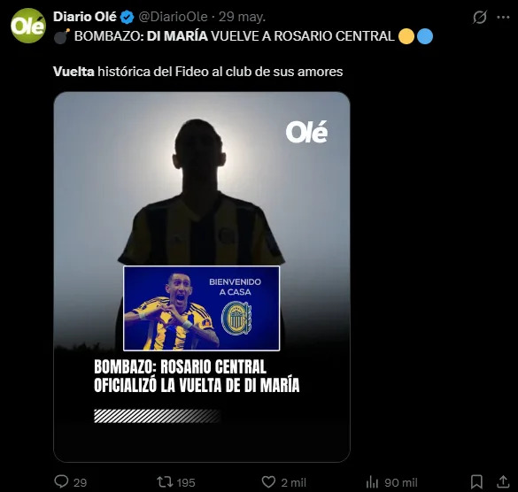 Without a doubt, Argentine football was eclipsed when Rosario Central confirmed the great return of Ángel Di María.