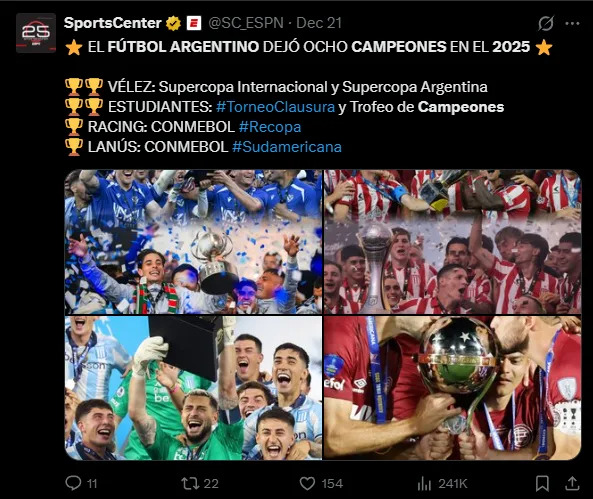 From there, criticism rained down on the AFA, but this didn’t change anything. There will be eight champions per year.